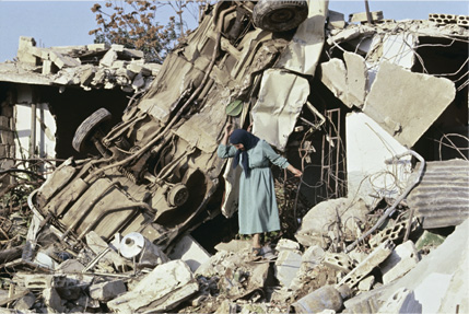 11. Палестинские беженцы, покинувшие свои дома после войны 1948 года и жившие в лагерях, оказались беззащитны перед ливанской христианской милицией, которая обвиняла палестинцев в эскалации насилия в гражданской войне. После вывода иностранных войск и убийства избранного президента-маронита Башира Жмайеля в сентябре 1982 года христианские ополченцы ворвались в палестинские лагеря в Сабре и Шатиле, находившиеся под охраной израильтян, и начали убивать безоружных гражданских лиц. На фото: выжившая женщина бродит среди руин на месте лагеря Сабра сразу после массовой резни.