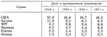 Страны Западной Европы по темпам роста промышленного производства опередили США. В 1971 г. объем промышленной продукции этих стран составил 85% американского уровня, в то время как в первые послевоенные годы их доля не превышала 50%.