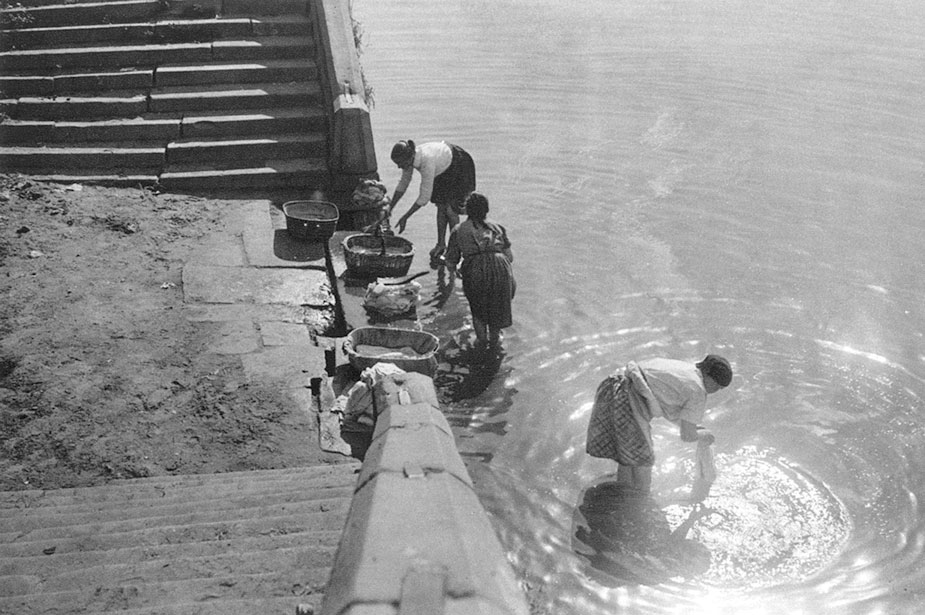 Стирка белья на набережной в центре Москвы, 1920?е гг.