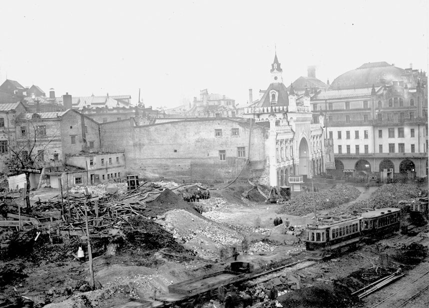 “Столбы” – Владимирские ворота, открывавшие проход с Никольской улицы на Лубянскую площадь, 1920?е гг.
