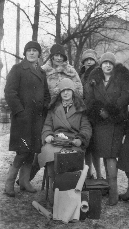 Т. Луговская (стоит в центре, вторая слева) среди слушательниц художественных курсов, 1928 г.