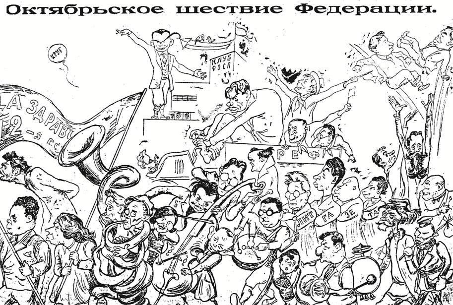 Карикатура на ФОСП (Федерация Объединенных Союзов писателей), 1929 г.