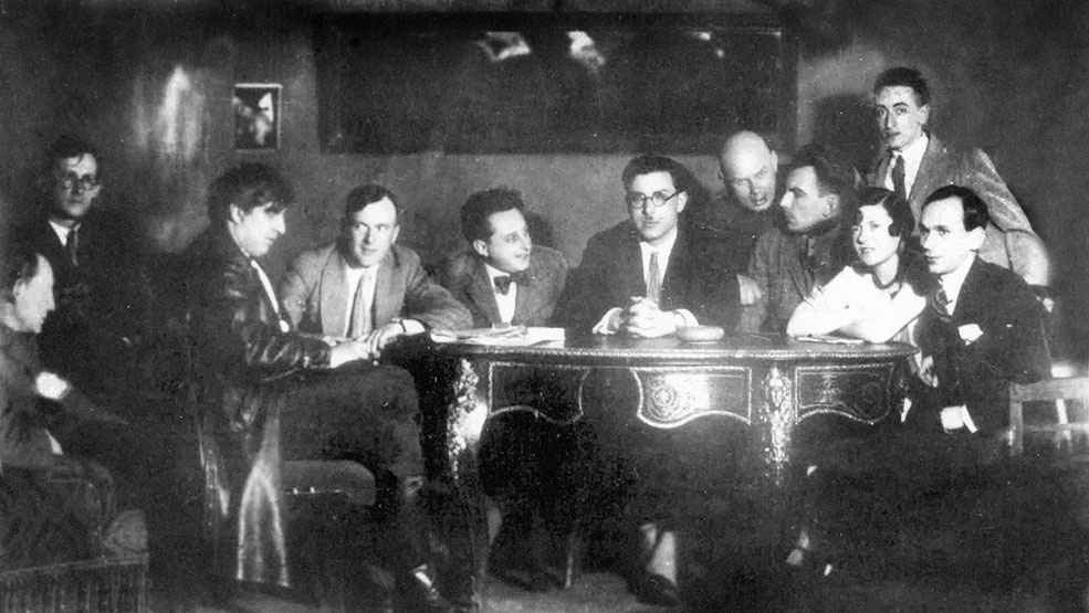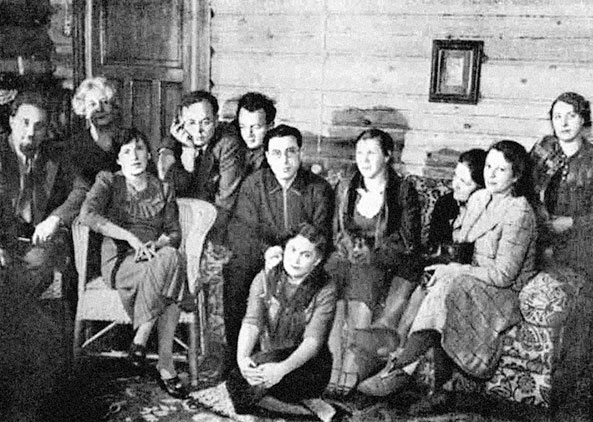 Вечер издательства “Узел”, конец 1925 – начало 1926 г. Стоят: П. Орешин, П. Зайцев, П. Антокольский, Д. Петровский, Б. Пастернак, С. Шервинский, Поздняков, А. Чичерин, А. Толоконников. Сидят: В. Звягинцева, Н. Павлович, С. Федорченко, С. Парнок, М. Тумповская, С. Абрамов. М. Зенкевич.