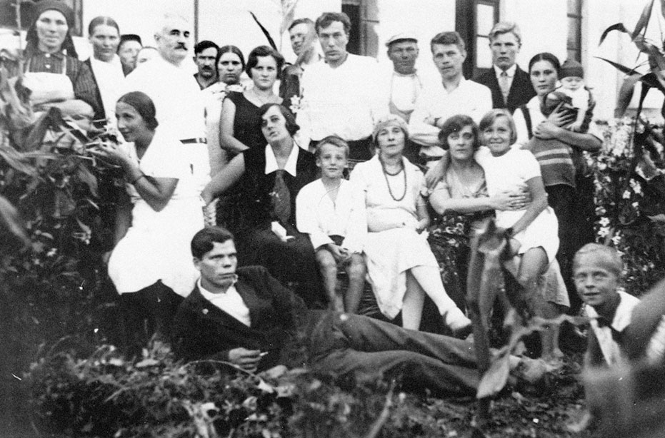 Б. Пастернак, З. Пастернак и Стасик Нейгауз в группе отдыхающих. Одоево, 1934 г.