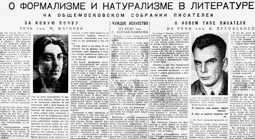 Газетные статьи с выступлениями против формализма, 1936 г.