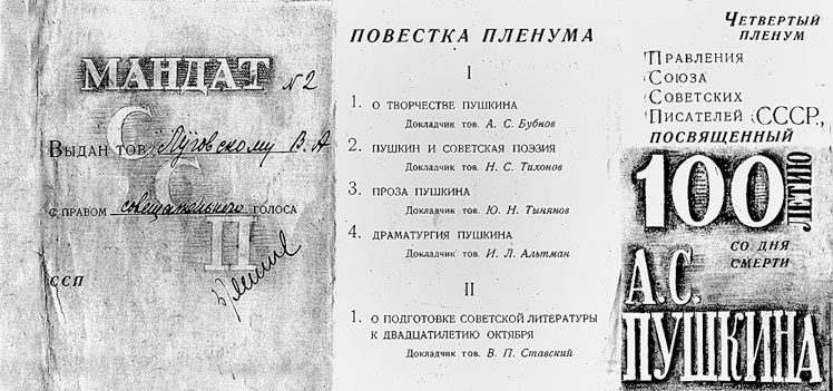 Пригласительный билет на Пленум правления Союза писателей СССР, посвященный 100-летию со дня смерти А.С. Пушкина, 1937 г.