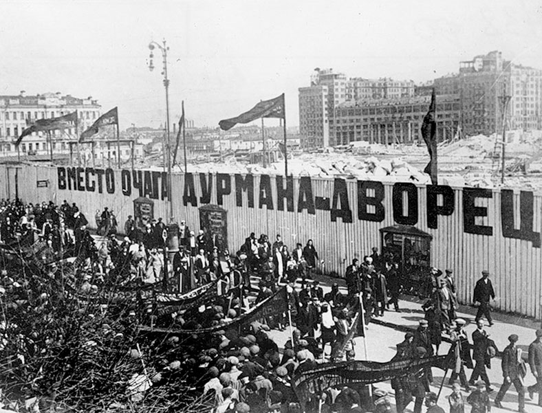 Демонстрация возле снесенного храма Христа Спасителя, 1 мая 1932 г.