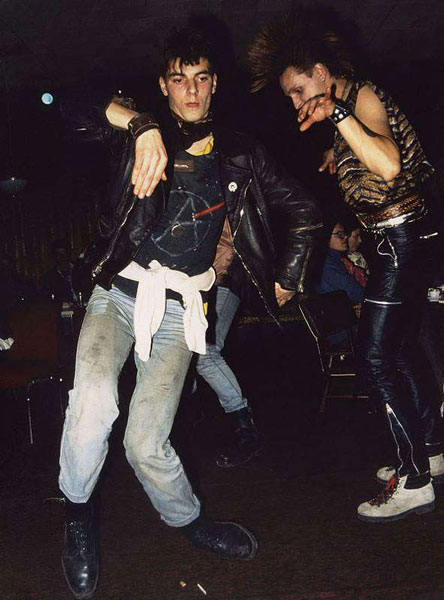 Но, конечно же, можно было не все; и на улице выхватывалось достаточно, чтобы понять это сразу же. Но рамки продавливались шаг за шагом. Я сам до 86-ого года об ирокезах и не думал. Мне достаточно было той формы, которая уже была и то, что я успел подсмотреть на концерте в ДК Каучук у Sielun Veljet. Это было как раз то, что нужно, чтобы отделить себя от всех – начиная с пэтэушных металлистов и заканчивая снобами-ньювейверами. А потом пошло-поехало, все на ход ноги и втихую от родителей. Я тогда учился в худшколе после образовательной и, говоря дома, что был в школе а в школе еще что-то, активно лазил по всяким мастерским пожилых художников и прочим скоплениям интересных для меня кучкований. Музыканты не интересовали никак, это все восполнялось зарубежными аналогами. И, естественно, стал получать по шапке от реальности, которая смыла все наносное, что в какой-то момент и подвело меня к ирокезной форме. Причем импонировало то, что таких пассажиров подметали тут же, и все перемещения превращались в интересную игру. А потом начали встречаться подобные товарищи: Нацик, Дима с Арменом ходили в солдатских шинелях с короткими ирокезами уже бордового цвета. Единственное, что тогда можно было выжать по цвету, были бордовый, рыжий и блондорандный колера. На Яшке встречался Даня, задумчивый паренек, который так и не влился ни в какое образование. Денис Циклодол, басист «Субботника». Не более 5–6 человек, которые нигде не тусовались, а просто курсировали по городу, сея смех и ужас.