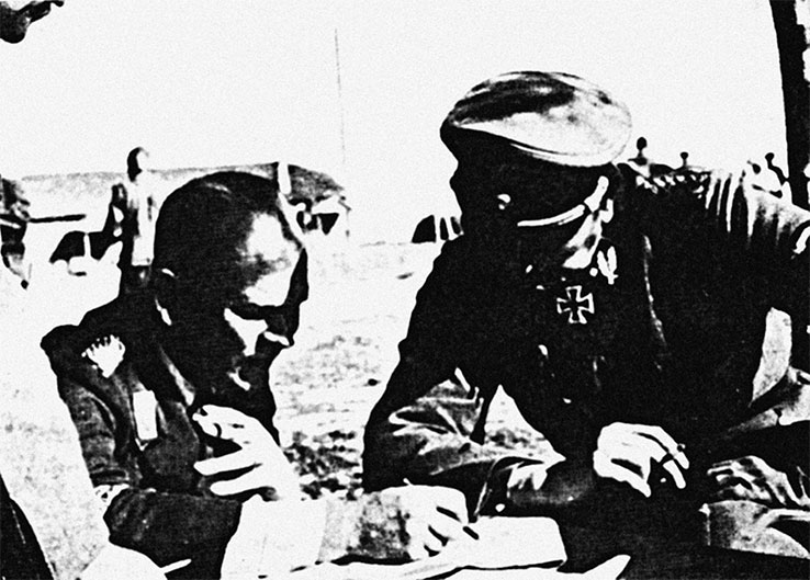 Генерал-полковник авиации фон Рихтгофен и командир «Мертвой головы» Кеплер на командном пункте