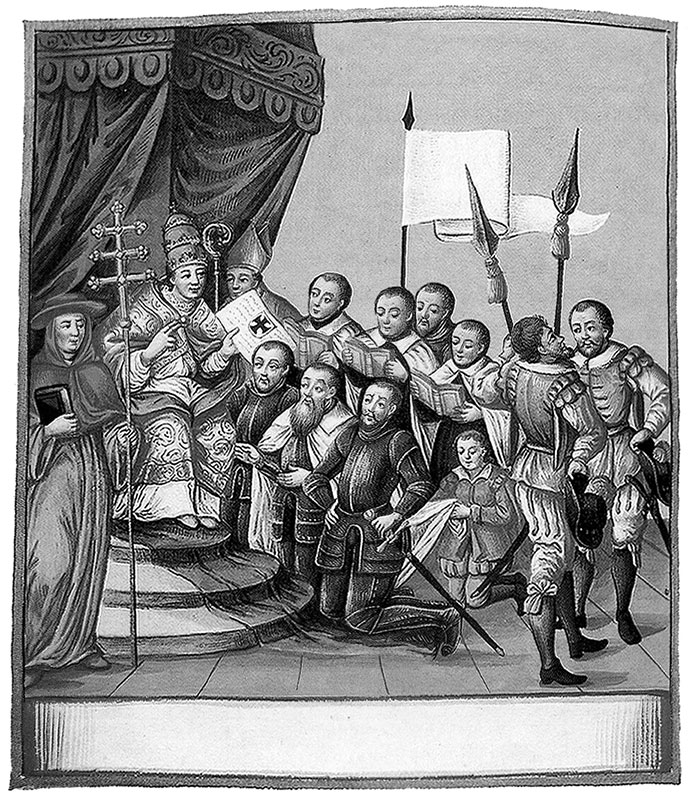 Папа римский дарует Тевтонскому ордену черный крест на первоначально белый стяг ордена