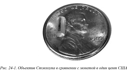 После извлечения и проявления микроточки агенту требовался достаточно мощный оптический прибор для прочтения текста сообщения. Микроскоп в квартире агента смотрелся бы странно, поэтому OTS использовала три малогабаритных камуфлированных приспособления для чтения. Самым маленьким был объектив «Пуля», также известный как объектив Стэнхоупа{667}. Этот крошечный объектив из тонкого стеклянного стержня диаметром 3 мм и длиной 6,8 мм, немногим толще грифеля карандаша, имел сферическую поверхность с одной стороны и плоскую полированную часть с другой. Микроточка увлажнялась слюной для приклеивания на плоскую сторону объектива, и пользователь размещал выпуклую часть объектива перед глазом, наводя его на окно или лампу. Объектив «пуля» способен был увеличить микроточку более чем в 30 раз{668}.