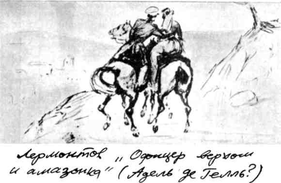 Из письма Адель к подруге: «Я ехала с Лермонтовым. Он как бурный поток… и я так счастлива. Оставив позади нас Алупку, Мисхор, Кореиз, Ореанду, мы позабыли скоро все волшебные замки, воздвигнутые тщеславием, и вполне предались чарующей нас природе. Я ехала с Лермонтовым…» Это опять и опять пишет Адель. Лермонтову она посвятит стихи на французском языке: «Тебе — все, что мой дух вверяет темным струнам, все, что меня пьянит в моем восторге юном, все, чем моя мечта прекрасна и светла, все, что гармония из сердца извлекла!» И такая строка: «Ты разгадал любви пленительный завет».