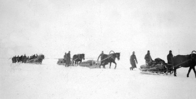 Использование саней в качестве транспортных средств к декабрю 1941 года стало привычным для частей вермахта на советско-германском фронте.