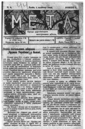 Журнал «Мета: орган українських поступових жінок», 1908 р. Відділ україніки ЛННБ ім. В. Стефаника