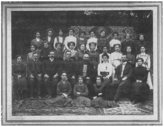 Учениці і вчителі приватної дівочої гімназії Сестер Василіянок у Львові. Фото [1909–1910] років. Відділ мистецтв ЛННБ ім. В. Стефаника