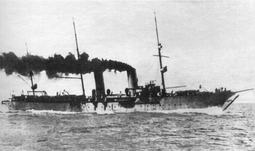 Крейсер «Алмаз», совершенно не приспособленный для участия в войне, был взят в этот поход явно по недоразумению. Злые языки утверждали, что «Алмаз» послан на войну только потому, что командиру крейсерского отряда адмиралу Энквисту, державшему свой брейд-вымпел на «Алмазе», понравились великолепная, птичьего глаза столовая, обитая шелком мягкая мебель гостиной и отделанный дорогой кожей кабинет адмиральских хором. Вероятно, это так и было, ибо в боевом отношении «Алмаз» с его обыкновенным корпусом и деревянными надпалубными помещениями серьезного значения не имел. Его 47- и 75-миллиметровые пушки не стреляли дальше 35 кабельтовых. [2]