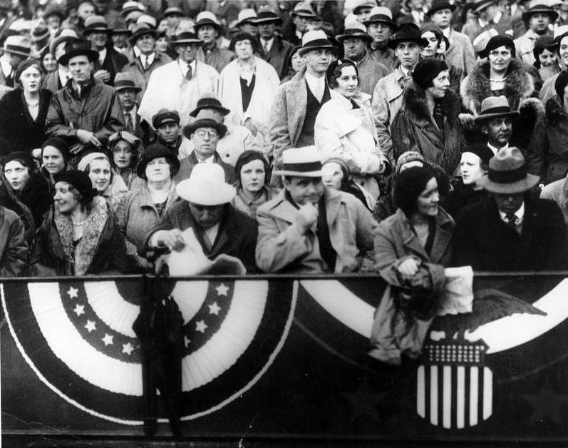 Аль Капоне наблюдает за футбольным матчем Нотр-Дам против Северо-Западного. Чикаго, 9 октября 1931 год.
