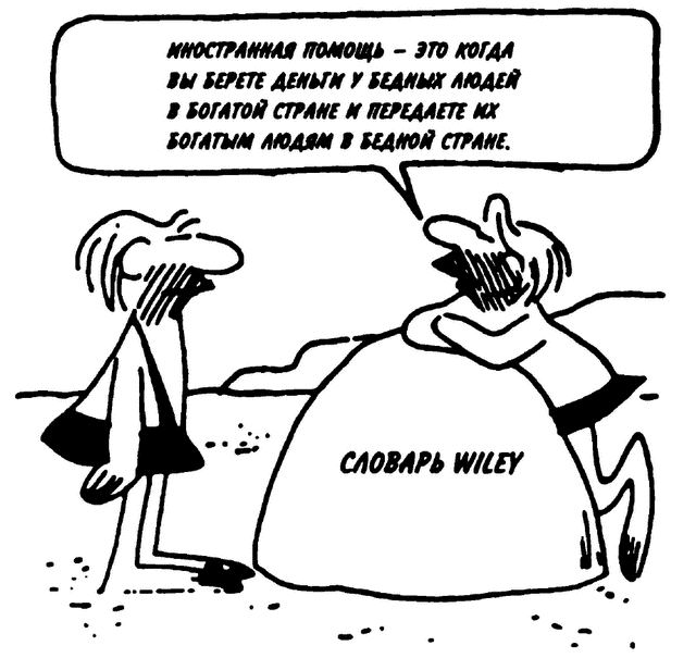 Деньги американской «помощи» также направляются на создание инфраструктуры, необходимой частным корпоративным инвесторам в иностранных государствах: портов, шоссейных дорог, коммуникаций и тому подобного. Американская невоенная помощь иностранным государствам также сопровождается определенными условиями. Зачастую выставляется требование тратить средства только на товары американского производства, оказывать инвестиционные преференции компаниям США, что смещает потребительский спрос с местных продуктов питания и товаров широкого потребления в пользу импортной продукции. Это, в свою очередь, порождает усиливающуюся зависимость, голод и рост задолженности[210]. Значительная часть денежной помощи никогда в страну не приходит, она попадает на личные счета вороватых официальных лиц и финансовых спекулянтов в странах — получателях помощи.