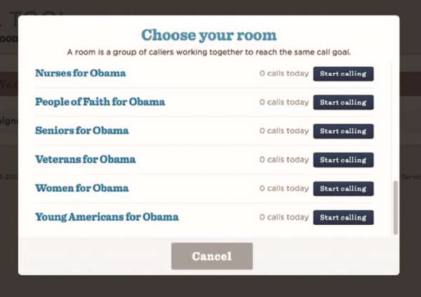 Еще одним каналом осуществления подобных действий было второе основное для кампании Обамы в 2012 году приложение — «Call Tool». Оно стало тем инструментом, назначение которого было, собственно, «get out the vote» (GOTV) — «добиваться явки избирателей на выборы» на протяжении кампании, позволяя ей разрастаться. Этот инструмент позволял сторонникам и волонтерам быстро присоединиться к кампании, предоставляя телефонный номер случайного человека и сценарий с подсказками, за которыми надлежит следовать.