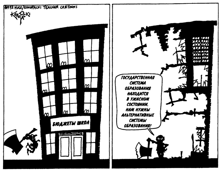 Однако практика демонстрирует противоположное. Приватизированные школы в городах Майами-Бич, Балтимор, Хартфорд (штат Коннектикут) и в других местах сочли систему частной ваучерной школы более дорогой и менее удобной для образовательного процесса и решили вновь вернуться в систему государственного образования[721]. Вообще говоря, государственные школы никак нельзя считать неудачным вариантом образования. Процент людей в обществе, окончивших высшие учебные заведения, на протяжении большей части XX столетия постоянно возрастал. Относительное количество лиц, отчисленных из учебных заведений, неуклонно снижалось. Вопреки распространенному мнению, что все неблагополучные студенты являются выпускниками школ из старых центральных районов городов, две трети отчисленных из высших учебных заведений — это белые молодые люди, две трети отчисленных — из семей с двумя родителями, и более 40% из них — из школ относительно обеспеченных пригородов. По сравнению с периодом 1970-х годов показатели успеваемости в чтении, математике и других дисциплинах остались стабильными или улучшились и не показывают никакой разницы между учащимися государственных и частных школ или приходских и светских школ[722].