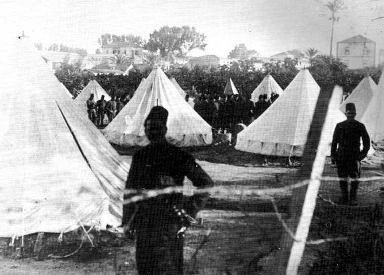 Ил. 79. Во время Первой мировой войны турецкие солдаты разбивали лагеря в садах Яффы.