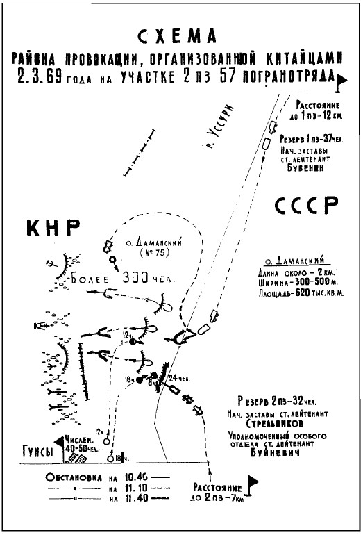 Настоящими заметками я не собираюсь описывать все события, которые развернулись в мартовские дни на заставах «Нижне-Михайловка» и «Кулебякины сопки». Об этом в те дни много писали не только советские, но и многие зарубежные средства массовой информации. Есть на этот счет и правительственные заявления. С подробными описаниями тех памятных событий и своей оценкой их выступили крупные советские писатели и журналисты, в том числе Константин Симонов. Он в двух номерах «Правды» поместил свой публицистический очерк «Мысли вслух»[28]. Имел возможность и автор описать эти события[29]. Однако вновь вернуться к уссурийским делам меня побуждает одно обстоятельство.