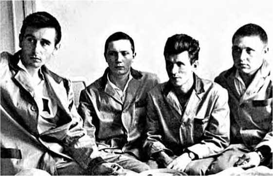Слева направо: рядовые В. Леготин, В. Захаров, старший лейтенант В. Бубенин, рядовой М. Пунтилов. Март 1969 г.