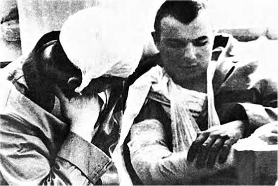 Раненые пограничники Е. Шмокин и К. Калашников. Март 1969 г.
