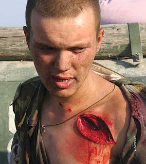 «"Нас зажали с двух сторон, – крикнул парень с безумными глазами, когда мы бежали назад, туда, где встали самоходки. – Ударили спереди и сзади. От нашей роты половина осталась! С моей машины трех ребят на куски разорвало! Только не снимайте, пожалуйста, – мама думает, что я у портала стою!" Портал, то есть вход-выход в Рокский тоннель, соединяющий Южную и Северную Осетию, был очень-очень далеко от Квемо-Никози... Боец, взявший на себя командование группой, орал в рацию: „Сосна, Сосна, ответь Каштану!.. Приняли бой, потеряли два танка, четыре БМП, много „двухсотых“, принял решение вывести людей!“ Все были в бою впервые и, как оказалось, не просто не знали местности... „Мы думали, что мы на территории России, на учениях“, – едва проговорил срочник Саша»[14] .