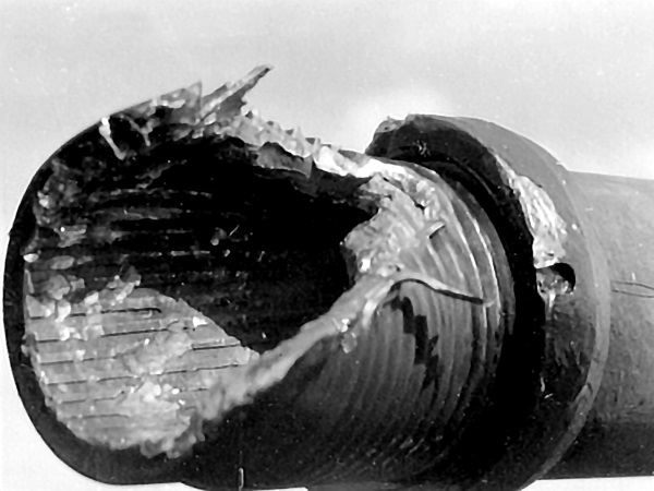 Ствол танка «Тигр» 2 тк СС, поврежденный снарядом. Июль 1943 г., район Прохоровки. (Фото Бюшеля. NARA USA)