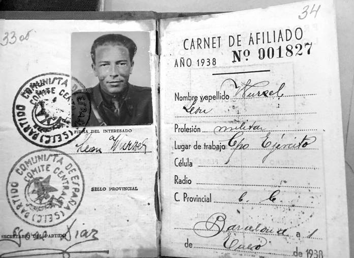 В Испании его называли «товарищ Лео». Именно так назван он, политический комиссар IV батальона его интербригады, в приказе Генерального штаба республиканской Испании от 20 сентября 1937 г. В документе отмечаются его «мужество и великолепные действия» в боях с фалангистами[702]. Из той же эпохи – его не публиковавшийся ранее партбилет. В нём он не Лоренц, а «Лео», не Мрац, а «Венцель». Но это точно он: на фотографиях за все периоды (в том числе из досье SOE из TNA) – один и тот же человек[703].