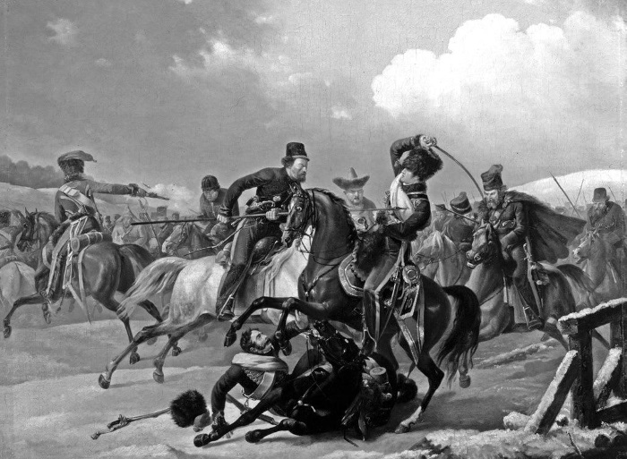 Поединок казака с уланом. Художник В. Мазуровский