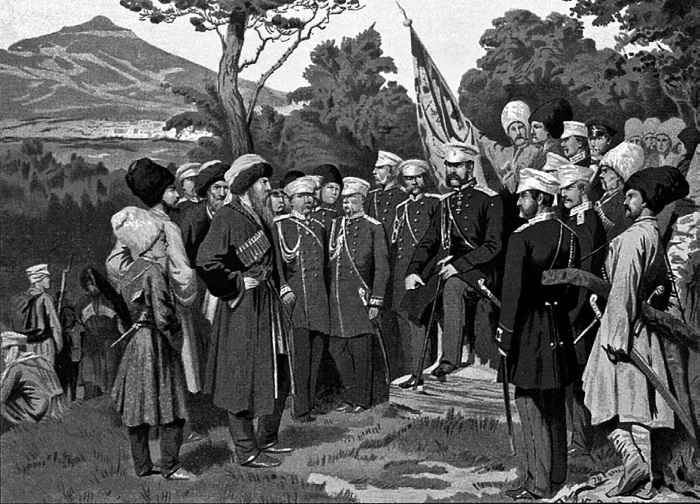 Пленный Шамиль представляется князю Барятинскому. 1859 г. Художник А. Кившенко. 1880 г.