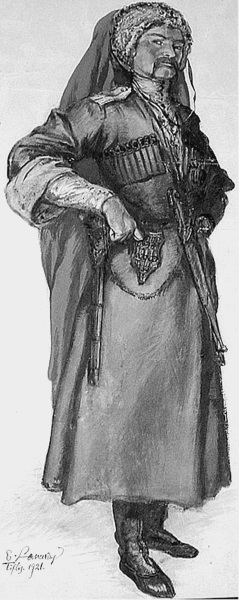 Казак-кавказец. Художник Е. Лансере. 1921 г.