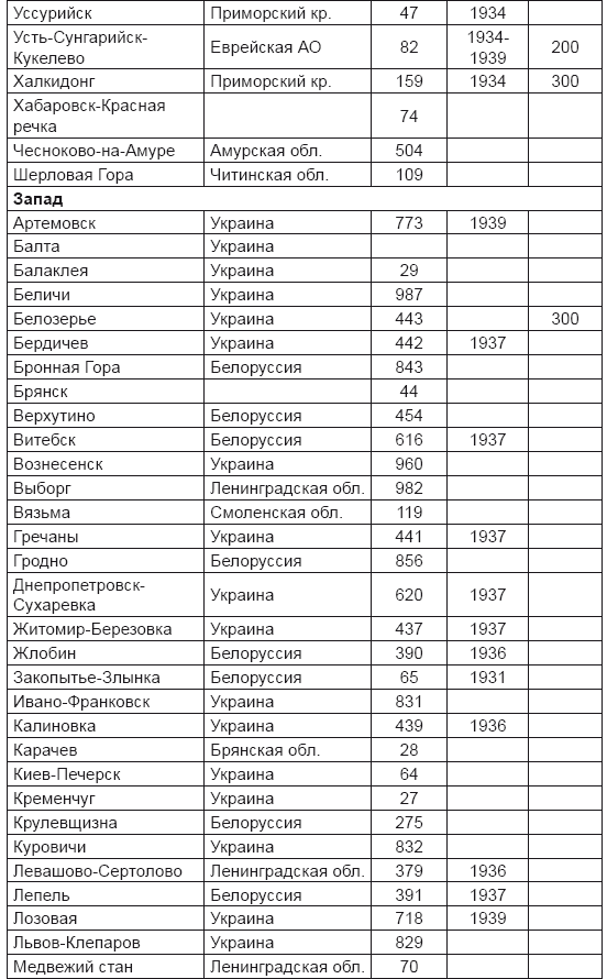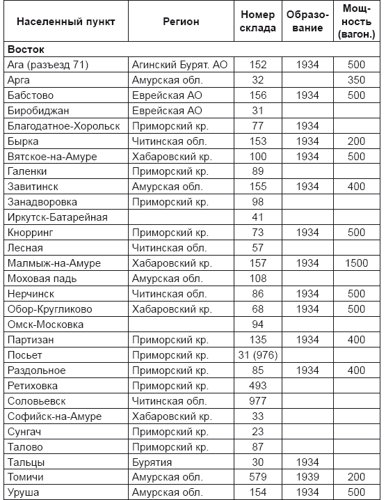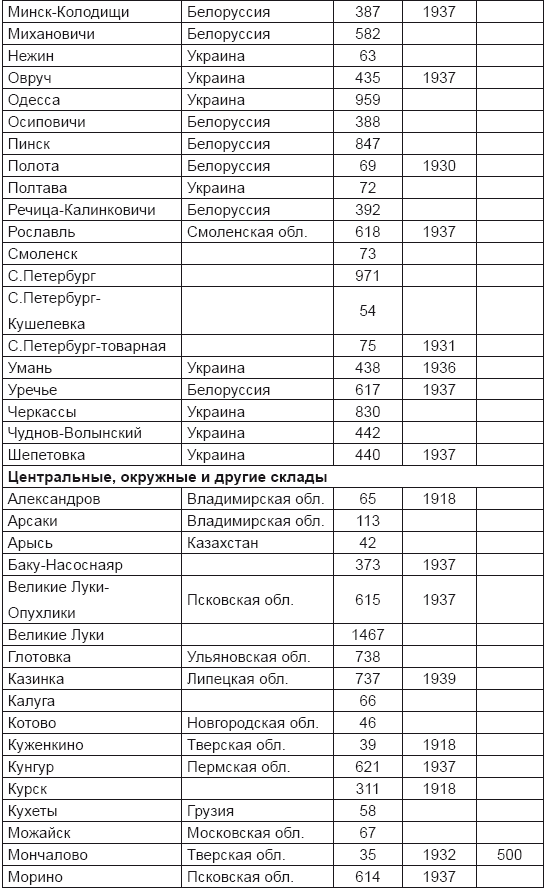 Табл. 17. Предвоенные советские артиллерийские склады, хранившие химические боеприпасы