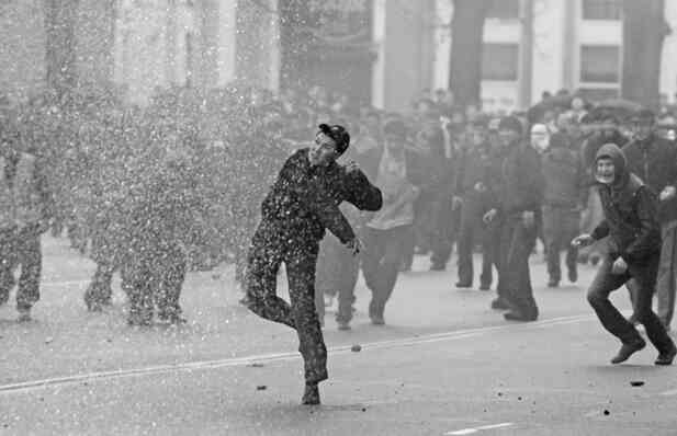 Местные власти решили силой разогнать недовольных, и мирный митинг в одночасье превратился в уличное побоище. В руках у митингующих появились камни и палки, вооружившись которыми они решили пойти в наступление.