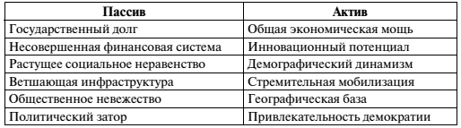 Американцы должны осознать, что наш престиж за рубежом все больше будет зависеть от способности справиться с внутренними проблемами. Главным условием для любой адекватной оценки глобальных перспектив Америки сейчас являются государственные меры в отношении необходимых системных преобразований. Что требует от американцев ясно представлять себе как слабые стороны страны в глазах мировой общественности, так и сохраняющиеся сильные. Трезвая оценка – необходимая отправная точка для реформ, без которых Америка не сможет удерживать глобальное лидерство, защищая основополагающие ценности своего строя.