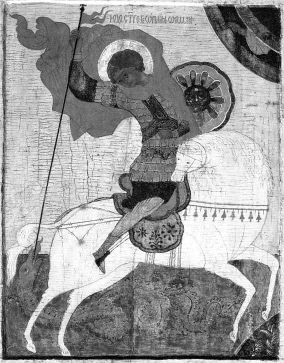 Над русским войском и над ордынским войском Мамая. Спас Нерукотворный примерно соответствует современным голубым беретам на десантниках. Это было отличие элитной гвардии, прошедшей обучение школе Спаса Нерукотворного, специальным воинским премудростям, умению ведения боя. Это профессиональная гвардия, известная из других литературных источников как берсерки. Иначе говоря, медведь с секирой. Те, которые ещё могли вызывать в себе такое состояние предбоевое. Чисто духовным воспитанием. Это современные ушу, кендо, самураи и т. п. Мы ведь больше сейчас смотрим на Запад и Восток. Всё это Спас Нерукотворный, и корни его растут ещё с XIV века и ранее.