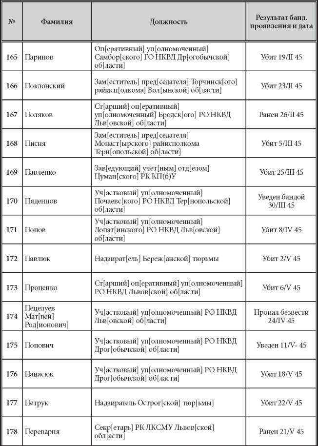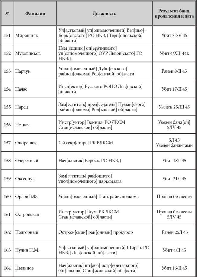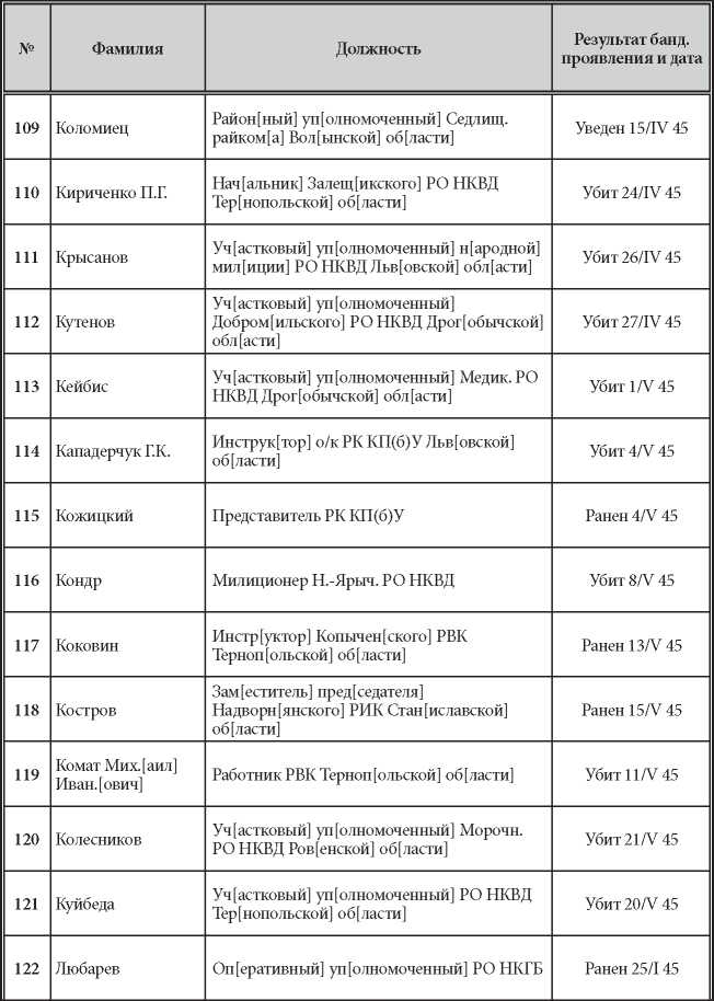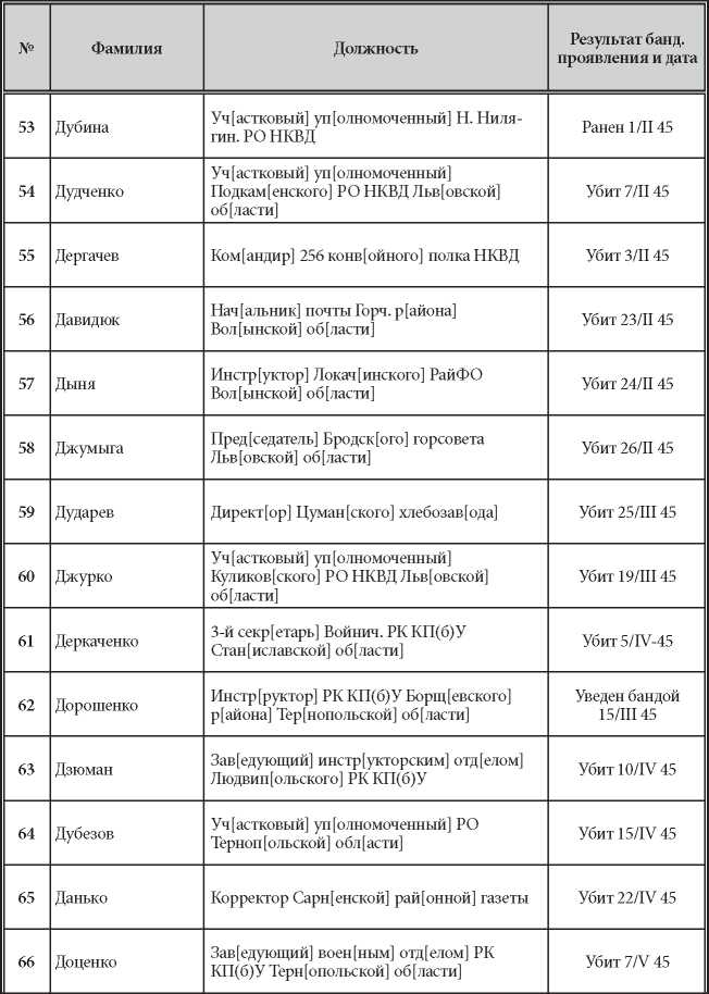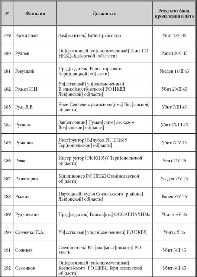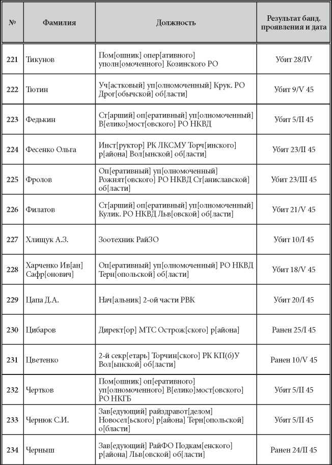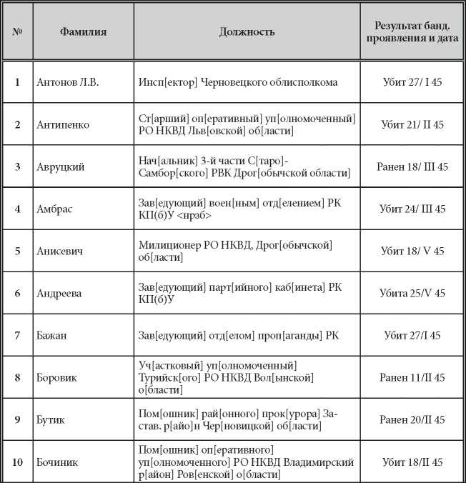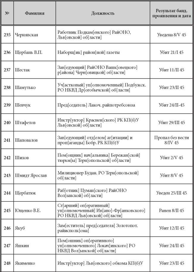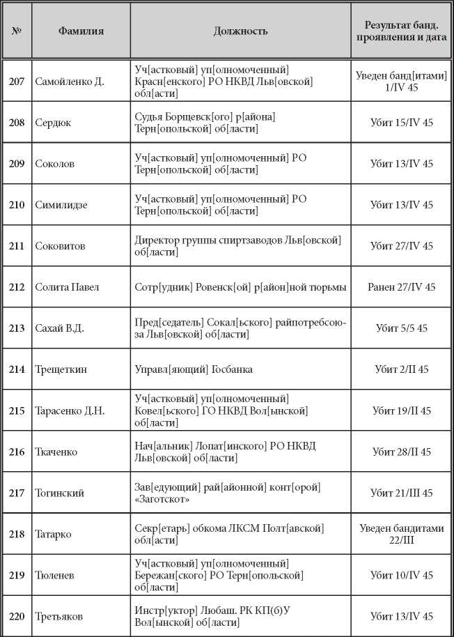 ПРИЛОЖЕНИЕ Алфавитный журнал учета сотрудников НКВД-НКГБ и совпартактива, убитых, раненых и уведенных боевиками ОУН — УПА за 1945 год