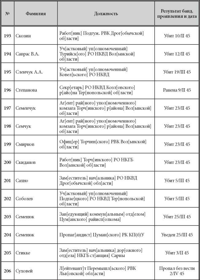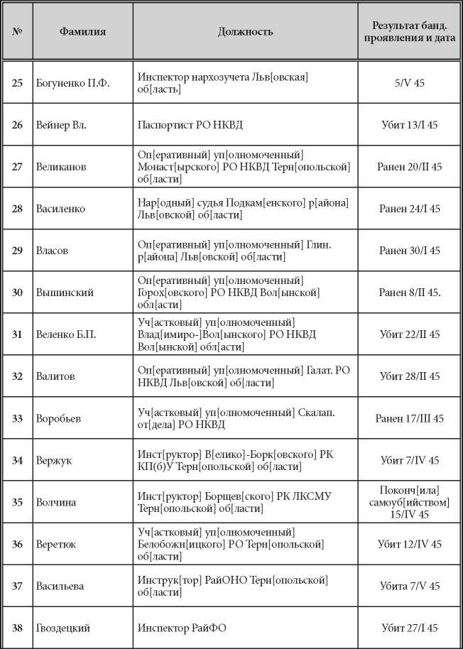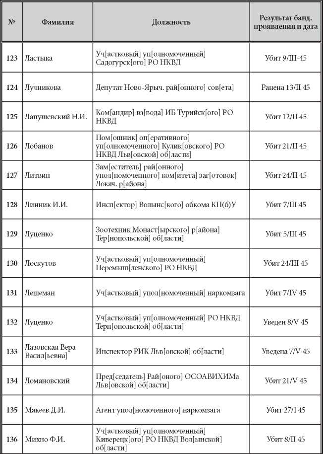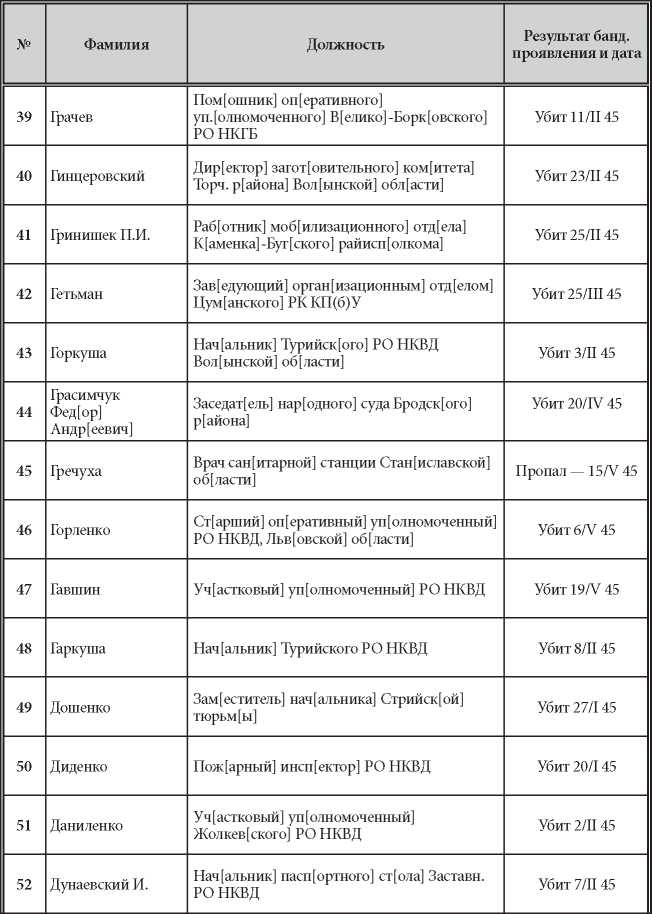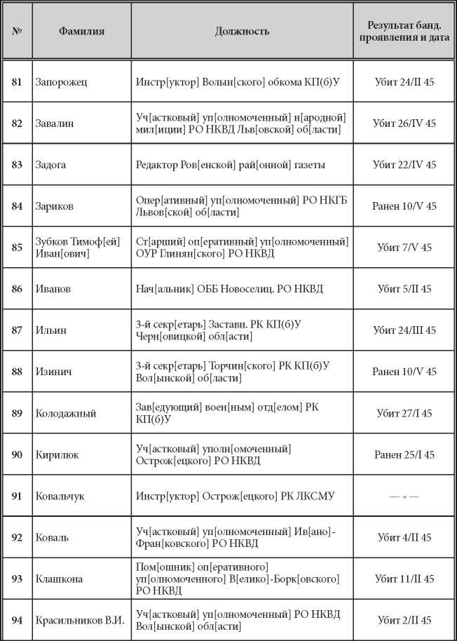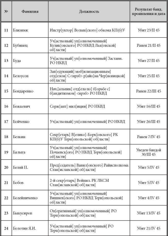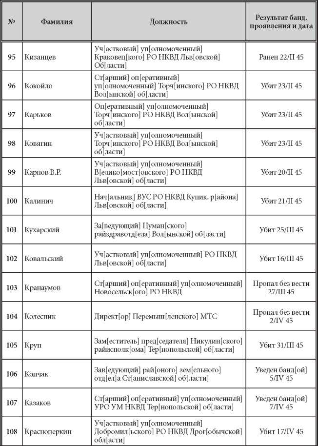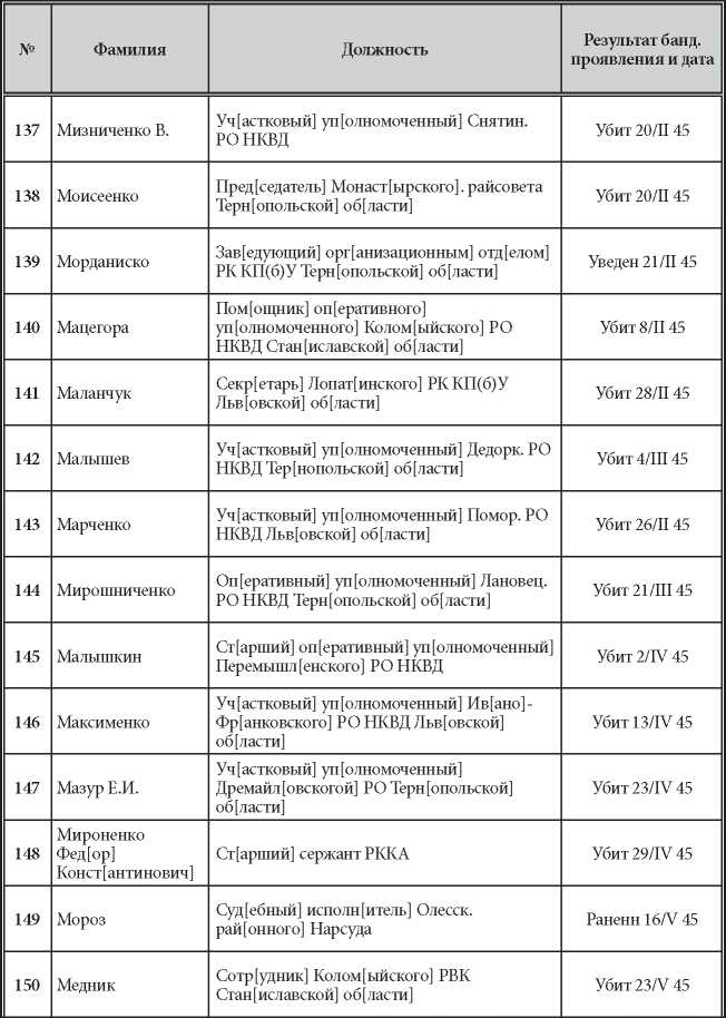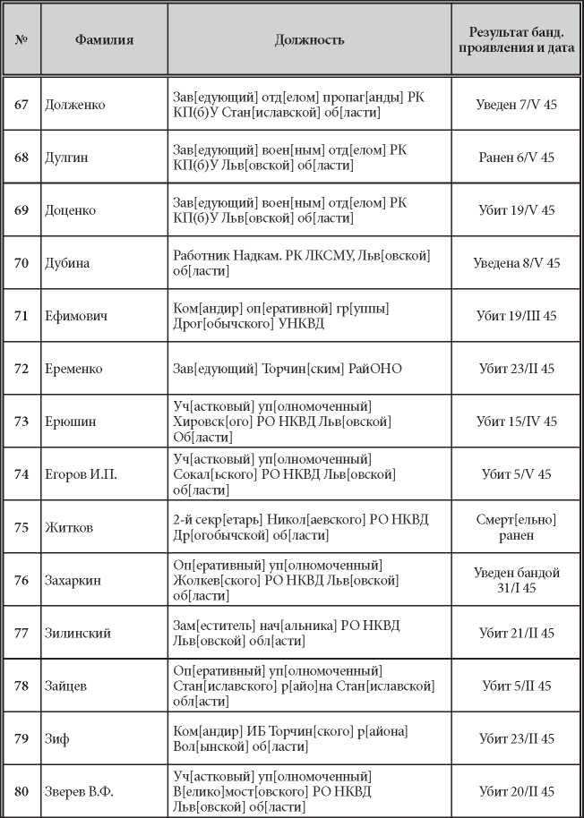 ПРИЛОЖЕНИЕ Алфавитный журнал учета сотрудников НКВД-НКГБ и совпартактива, убитых, раненых и уведенных боевиками ОУН — УПА за 1945 год