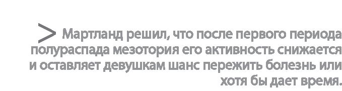 Причем деньги были не единственным поводом для поднятия духа, потому что многие из врачей, к которым обращались девушки, теперь давали им надежду. Фон Зохоки объявил: «По моему мнению, эти девушки проживут гораздо дольше, чем они сами могут подумать». Даже Мартланд, заметив, что уже несколько лет после смерти Молли Маггия и Маргариты Карлоу никто из девушек не умирал, выдвинул теорию, что существует «два типа случаев с красильщицами циферблатов – ранние и поздние. Ранние характеризовались тяжелой анемией и некрозом челюсти… В поздних отсутствовали (либо были излечены) анемия и инфекция челюстной кости». Мартланд считал, что более быстрый распад мезотория объяснял это различие; первые несколько лет девушки находились под ожесточенной атакой радиации, однако по истечении первого периода полураспада мезотория его активность снизилась в достаточной мере, чтобы пощадить девушек; их отравление напоминало поднимающуюся приливную волну, и женщинам удалось выбраться в безопасное место, как раз когда вода начала уходить. Хотя радий и продолжал облучать их кости, он, как известно, был менее агрессивным, чем мезоторий. Мартланд предположил, что если девушкам в поздних случаях «удалось пережить первые проблемы со здоровьем, то у них были все шансы и вовсе пережить отравление радием» – хотя у них навсегда останутся эти изъеденные радием кости. «Я считаю, что девушки, которых мы сейчас наблюдаем, – сказал он, – хотя и получили неизлечимые увечья, имеют значительные шансы победить свою болезнь». Новый прогноз, каким бы мрачным ни казался в каком-то смысле, давал женщинам самое ценное: время. «Кто-нибудь может найти способ нас исцелить, пускай и в самый последний момент».