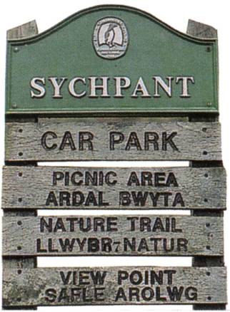 Надпись на двух языках, английском и валлийском на указателях для туристов.