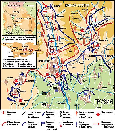 ...бьло сообщено, что Грузия «в ответ на провокации» начинает военную операцию по «установлению конституционного контроля» над территорией «Цхинвальского района Грузии»