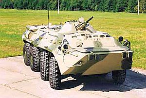 Боевая колесная бронированная плавающая машина, предназначенная для транспортировки мотострелковых частей к месту боевых действий, их бронезащиты, огневой поддержки, повышения мобильности на поле боя. Принят на вооружение отечественных вооруженных сил в 1986 году. Активно использовался в военных конфликтах третьей четверти ХХ века. Экипаж – 3 человека плюс 7 человек десанта. Масса – 13,6 тонны. Основное вооружение – 14,7-мм пулемет.