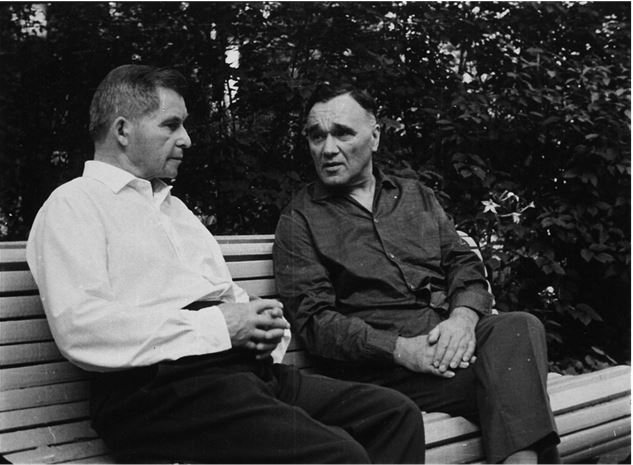 С.В. Ильюшин и А.С. Яковлев беседуют в часы досуга на даче Яковлева в Жуковке. Архив ОАО «ОКБ им. А.С. Яковлева».