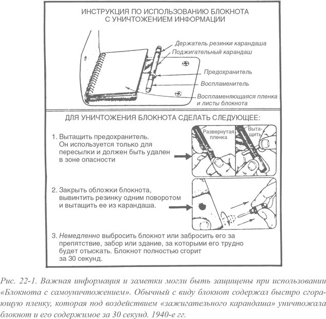 Первый тайниковый контейнер помещался внутрь авторучки или набора бритвенных принадлежностей и содержал два-три сложенных листка. Второй контейнер представлял собой блокнот средних размеров, а третий – портфель, способный уничтожить свой внутренний специальный тайник для военных карт и документов{592}.