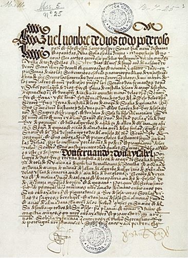Всё шло хорошо, пока Христофор Колумб не привёз кастильским королям новые земли в Америке. Теоретически они тоже находились южнее Канар и должны были отойти Португалии. Но у Изабеллы и Фердинанда было совершенно иное мнение на эту тему. Да и папой к тому времени работал уже не Сикст IV, а уроженец испанской Валенсии Родриго де Борха (более известный как Александр VI Борджиа), который отменил буллу предшественника и выпустил новую, с учётом интересов своих соотечественников. Эта булла, постановившая разделить весь внеевропейский мир между Испанией и Португалией, носила характерное название «Между прочим».