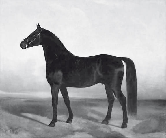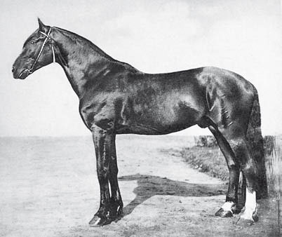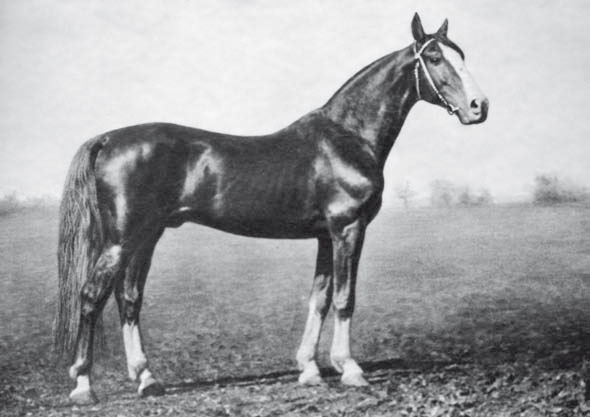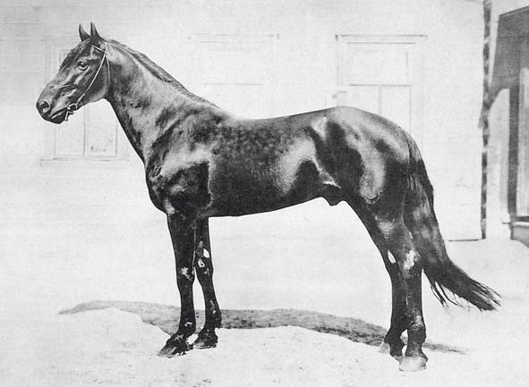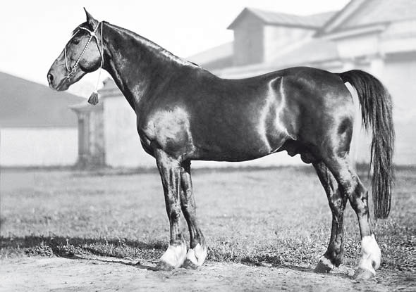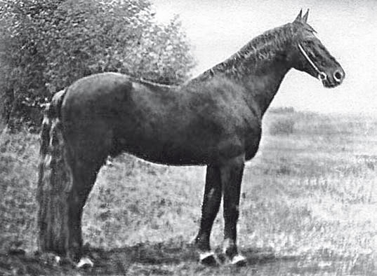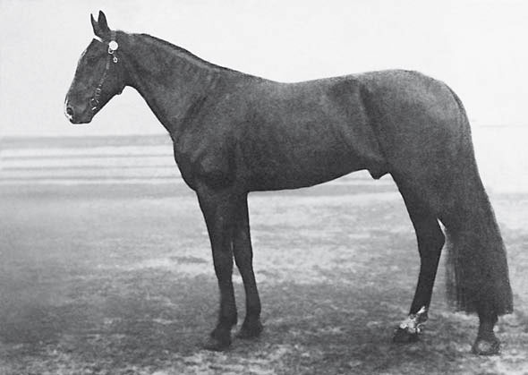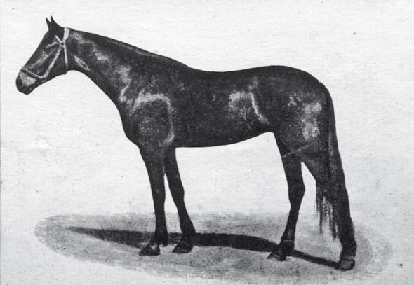 Князь Вяземский говорил мне, что Мастер был необыкновенно хорош по себе и Моряна имела с ним много общего. Мать Моряны Милая была одной из резвейших кобыл своего времени. Она происходила из завода Жихарева. Из всех многочисленных жихаревских лошадей Милая была наиболее интересной по породе, ибо в прямом женском колене происходила от знаменитой Пеструхи, дочери Цветного. Моряна была очень приятной светло-рыжей масти, глубины, ширины и костистости прямо-таки невероятных. В этом отношении она могла соперничать с одной только Громадой, хотя и уступала ей. Ростом три с половиной – четыре вершка, она казалась много меньше, так как была удивительно глубока и дельна. Имела довольно большую, но приятную голову, превосходную шею, замечательную линию спины и вообще верха. Зад у нее был очень широк, так же широко она стояла передом. Плечо имело замечательный наклон и было превосходно обрисовано. Ноги были образцовые по кости и постановке. Будучи очень длинной, кобыла покрывала много пространства. При этом она была на низких ногах. Бабки ее были мягковаты, что она, между прочим, передала и своему сыну Магу.