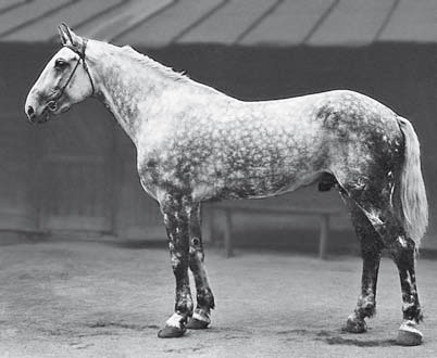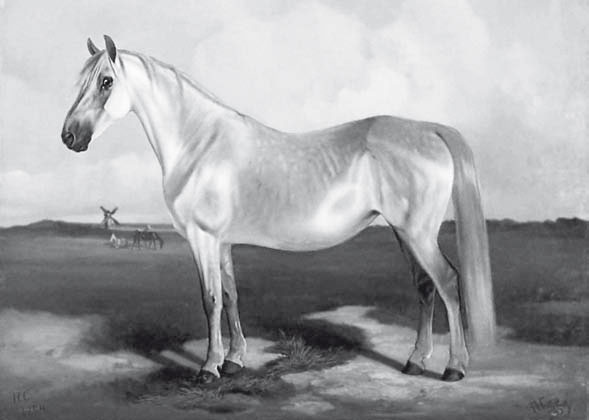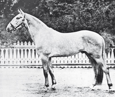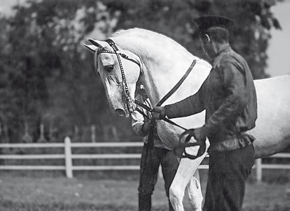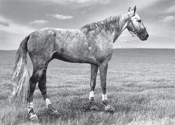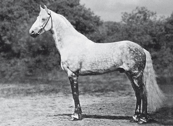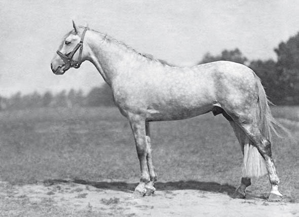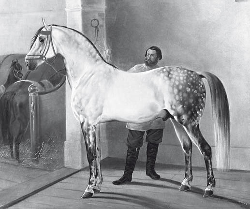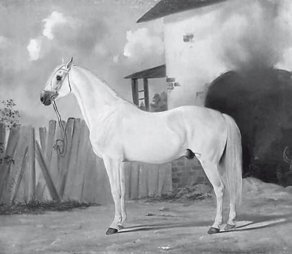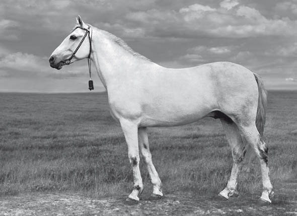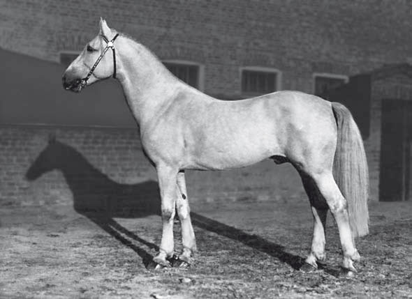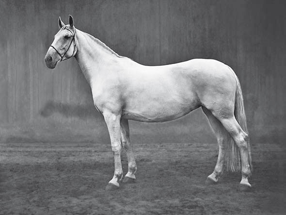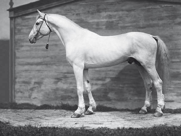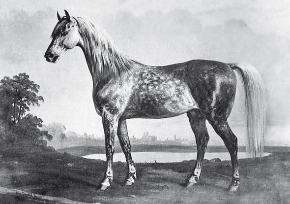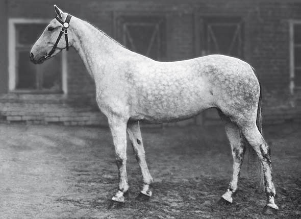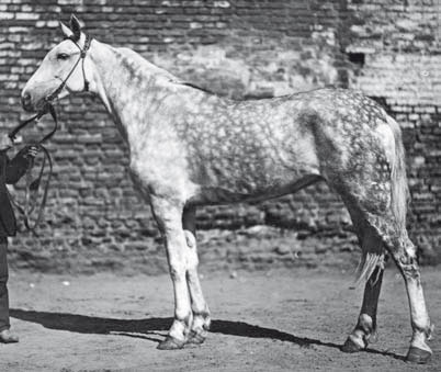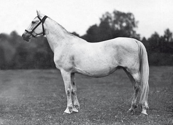 Если спросить любого охотника, каков был по себе Кронпринц, то обязательно услышишь ответ: маленький белый жеребец, узкий и жидкий. Это совершенно неверно. По себе Кронпринц была редкой и весьма интересной лошадью. Почему мое мнение так резко расходится с мнением других охотников? Все судят о формах Кронпринца по тем его фотографиям, которые были напечатаны. А изображение Кронпринца было напечатано лишь однажды, после розыгрыша Императорского приза. Бег этот, как известно, был совершен по грязи и в тяжелых условиях. Стоит ли удивляться, что на этих фотографиях Кронпринц подтянут и имеет утомленный вид. По этим фотографиям нельзя судить даже о типе жеребца, не говоря уже о его формах. В действительности Кронпринц был лошадью высокой породности и превосходного, чисто орловского типа. Он, как и брат его Кот и отец Недотрог, был невелик, ибо в нем было только три вершка росту. Масти он был исключительно белой, с красивым темным обводом вокруг глаз. Кожа у него была тонкая, а шерсть короткая, необыкновенно нежная и шелковистая, на солнце она красиво переливалась и отсвечивала голубыми и розовыми бликами. Грива и челка были умеренной длины, а хвост очень богат волосом и распадался на красивые пряди. Все это было крайне эффектно, и в этом отношении Кронпринц был недосягаемо выше Кота. В этой лошади был свой особый и крайне приятный эрфикс[2]. Мимо этого жеребца, в особенности когда он был в заводском теле, ни один охотник пройти не мог без того, чтобы не залюбоваться. Голова у Кронпринца была небольшая, очень кровная, с широким лбом и хорошим агатовым глазом; шея – почти лебединая, круто поставленная и эффектная; спина неважная, с явным уклоном к холке, но при превосходной связке. Зад и окорока у жеребца были замечательные, ребра много; он был низок на ноге и глубок. Ноги, превосходные по форме, отличались образцовой сухостью, о размете не было и помину, как, впрочем, и у всех остальных детей Недотрога. Кронпринц был широк и широко стоял задом. Вот объективное описание экстерьера этой лошади. Я считаю Кронпринца типичным Лебедем 4-м и ближе именно к этому жеребцу, чем к Лебедю 5-му и его потомству. В заключение скажу, что Кронпринца, когда он был уже в заводе, почти никто из знаменитых коннозаводчиков не видел, а потому и не мог оценить. Лошадь эта, несомненно, вошла бы в большую славу и была бы высоко оценена всеми на выставке, но осуществиться всему этому не дала российская революция.