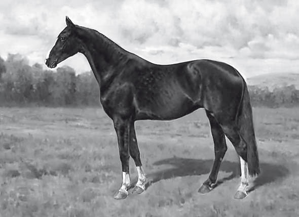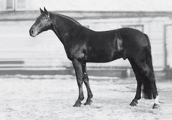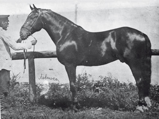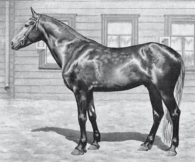Купленная вместе с ней вороная кобыла Ненаглядная пришла к Сахарову в брюхе своей матери Волшебницы, которая родилась в заводе Козловского. Волшебница была одной из тех кобыл этого завода, которых Новосельский привел в Одессу и здесь распродавал, до того как уступил весь состав завода моему отцу. Ненаглядная была хорошего происхождения, в особенности как дочь хреновского Бархатного, давшего у герцога Лейхтенбергского много превосходных кобыл. В заводе Сахарова она дала бежавший приплод, а двое ее сыновей, Ненаглядный 2.21,3 и Кошут 2.20, показали даже известный класс. Таким образом, покупка этой кобылы оказалась находкой для моего завода, но, к сожалению, Ненаглядная по тем же причинам, что и Маруся, была истощена, к тому же ей было 16 лет, так что лучшие ее дни остались в прошлом. Я получил от Ненаглядной двух безминутных вороных кобыл – Надпись и Невесту, а в 1906 году продал ее великому князю Петру Николаевичу, который формировал тогда рысистый завод.